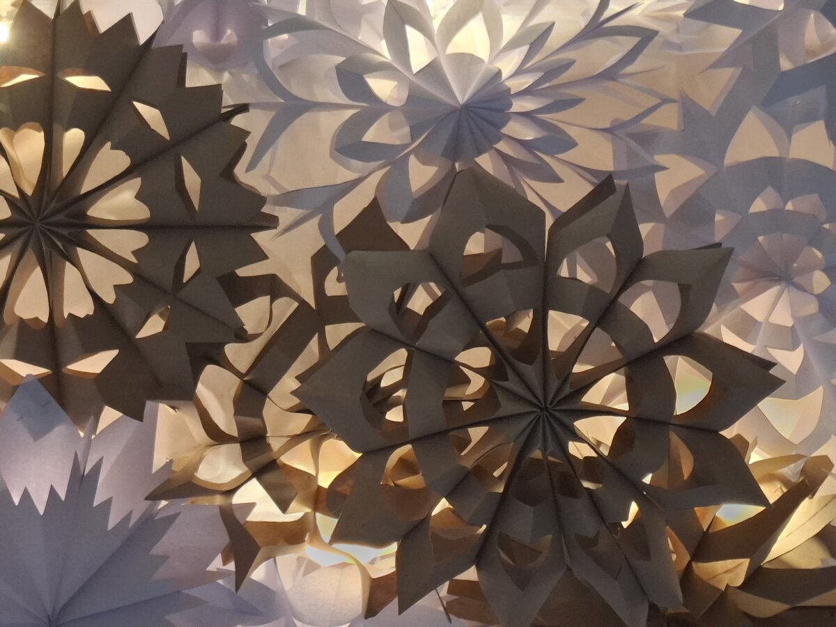 „Ir žodis tapo kūnu“ – taip dar spalio mėnesį gimusi mintis apie progimnazijos puošimą ypatingomis tūrinėmis snaigėmis tapo realybe! Ir ne tik fojė „siaučia“ snaigių pūga. Šių metų progimnazijos kalėdinė eglutė taip pat pagaminta iš snaigių! Tai 5-8 klasių mokinių rankų darbo rezultatas. Paskutinę lapkričio savaitę dailės ir technologijų kabinetai virto tikromis snaigių dirbtuvėmis. Dėkojame mokytojams Margaritai, Daivai, Eglei, Egidijui už vadovavimą ypatingų snaigių gamybos procesams ir progimnazijos puošimą jomis. Kaip gamtoje, taip ir vaikų rankomis sukurtos snaigės labai įvairios, unikalios, nuostabios.