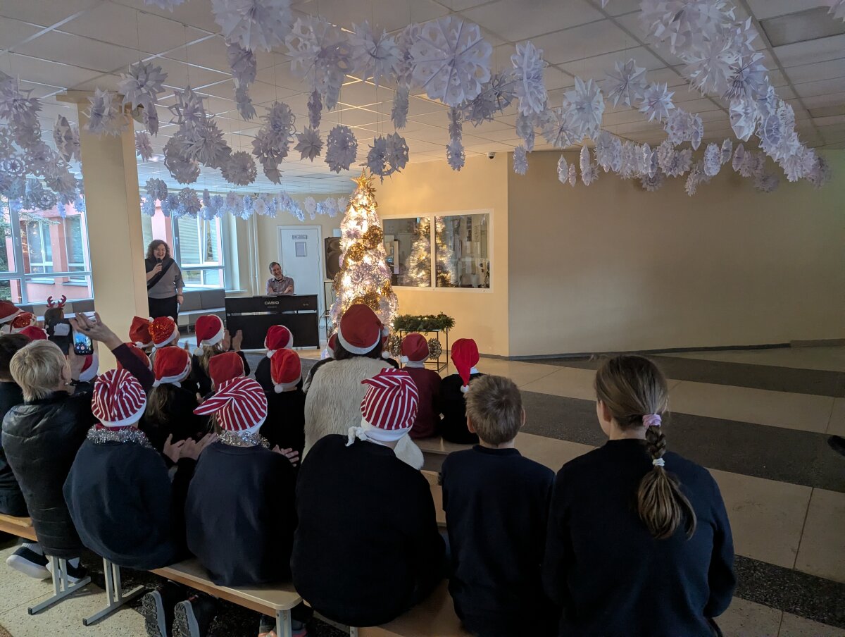 Tuomet pačią pirmą žiemos dieną – gruodžio 1-ąją – pirmų ir specialiųjų klasių mokiniai gražuolę eglutę ir įžiebė. Pasipuošę kalėdinėmis kepuraitėmis, blizgučiais į fojė sugužėję mokiniai piešė ore, deklamavo eilėraščius, dainavo, minė mįsles, mokėsi skaičiuotės... Iš pradžių užsispyrusi eglutė po tokių linksmybių įsižiebė, o pasigirdę „Ooooooo! Vaaaau!“ patvirtino, kad įdėtos pastangos atsipirko su kaupu.