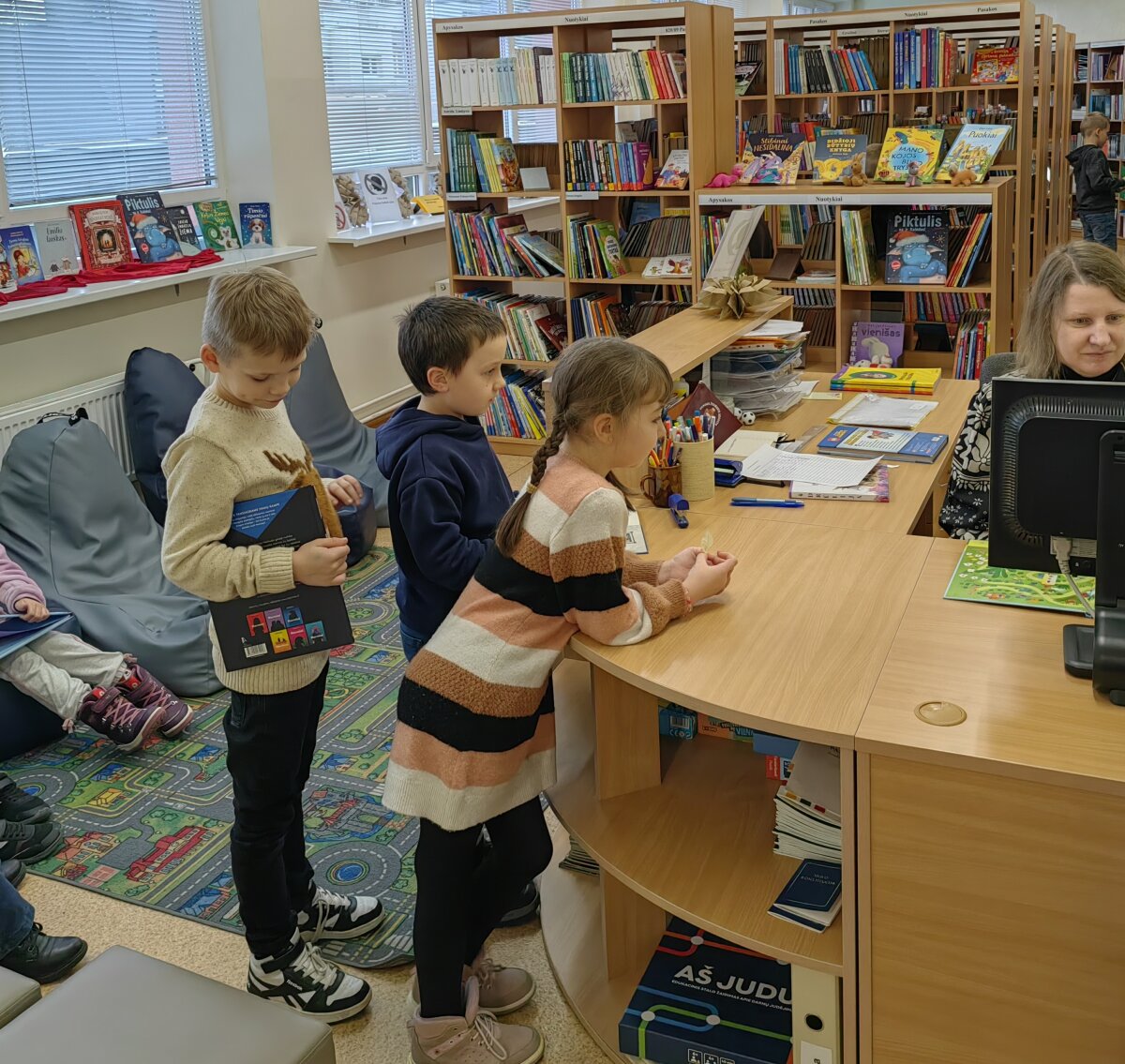 Gruodžio 6d. 1b klasės mokiniai buvo pakviesti į pažintinę pamoką „Kelionė į knygų šalį“, kurios metu susipažino su progimnazijos biblioteka ir jos teikiamomis galimybėmis. Pirmokėliai sužinojo pagrindines bibliotekos taisykles, kaip tinkamai elgtis su knygomis. Mokiniai turėjo progą apžiūrėti, kaip sudėtos knygos, išsiaiškinti, kaip galima jas pasiskolinti, ir sužinoti, kur jas reikia grąžinti perskaičius. Pamokos pabaigoje bibliotekininkė įteikė mažiesiems skaitytojams sukurtus skirtukus, kurie padės nepasimesti tarp knygos puslapių. Užbaigdami savo kelionę po biblioteką, pirmokai prisiekė skaityti knygas, jas saugoti ir tapti atsakingais skaitytojais. Tai buvo reikšminga akimirka, simbolizuojanti pirmokų naują draugystę su knygomis. Galiausiai vaikai išsirinko po pirmąją knygelę, kurią su didžiuliu entuziazmu nešėsi skaityti namo. Ši pamoka ne tik supažindino pirmokus su biblioteka, bet ir atvėrė duris į stebuklingą knygų pasaulį. Vaikai išsinešė ir naujų žinių, ir norą sugrįžti į biblioteką, kur jų lauks dar daugybė nuotykių, paslapčių ir įkvepiančių istorijų.