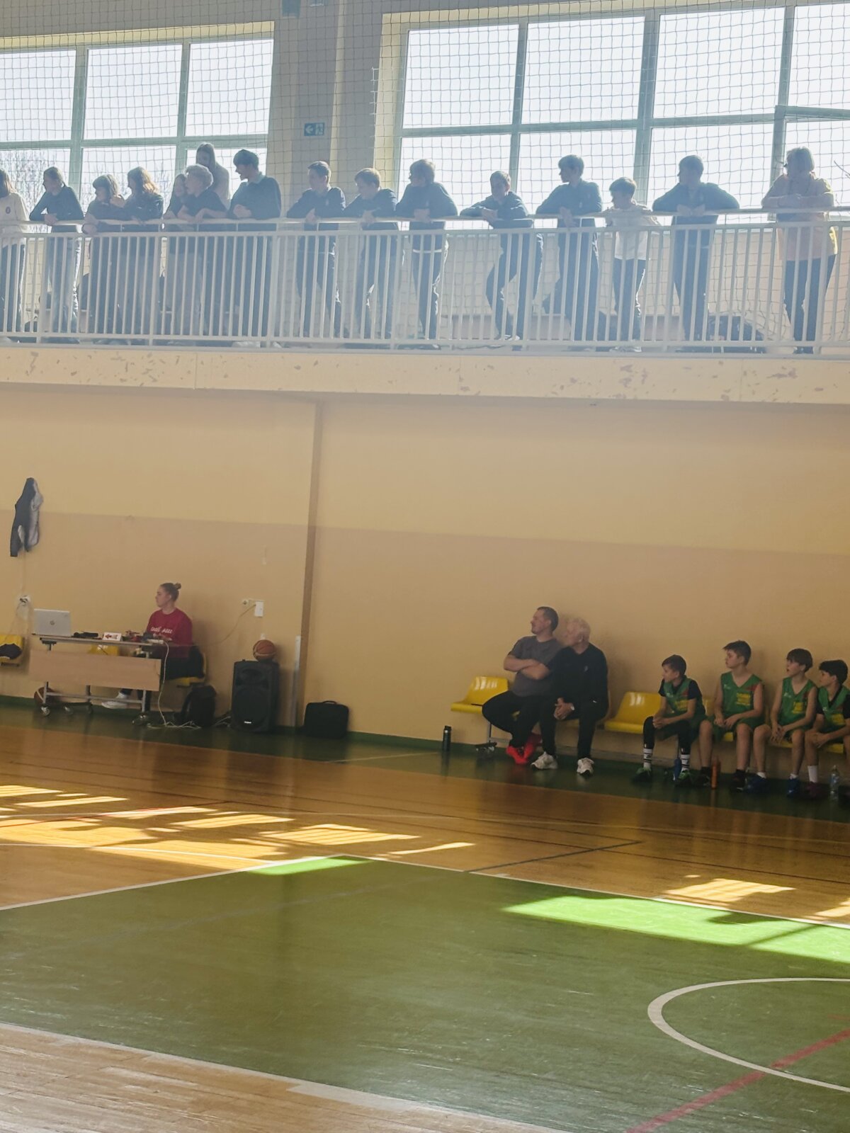 Krepšinio varžybų ilgosios pertraukos metu komandų žaidėjus ir gausiai susirinkusius sirgalius džiugino aerobinės gimnastikos sportininkių (Tėjos ir Tomos) pasirodymai (trenerė V. Juodviršė).