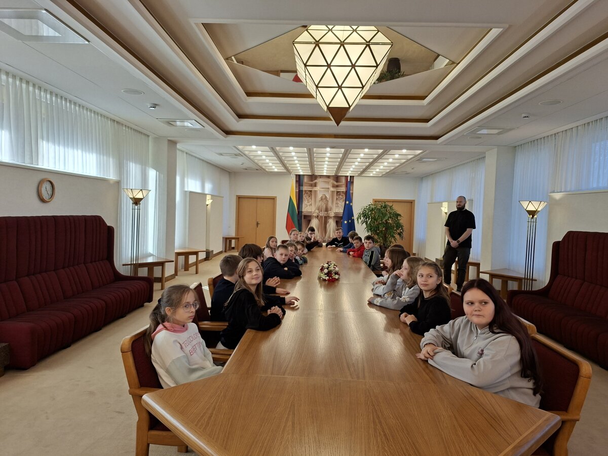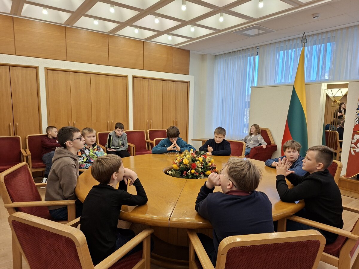 Kaip pati garbingiausia svečių delegacija buvome pakviesti į A. M. Brazausko ir Prezidento sales, kur gidė atskleidė kai kurias protokolo paslaptis, o apsilankę Seimo posėdžių salėje išsiaiškinome, kaip sėdi ir balsuoja parlamentarai, kam reikalingas gongas ir varpelis.