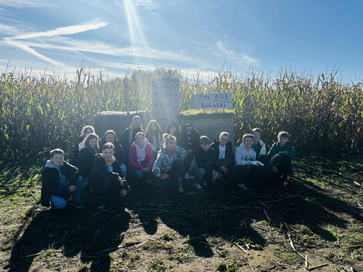 Spalio 20 d. įgyvendinome projektinės veiklos „Šiandien ir visada būsiu pilietis” programą. 8B, 7A ir specialiosios klasių mokiniai vyko į Upės pievos ūkio kukurūzų labirintą (Jurbarko raj.) ir į Panemunės pilį. Edukacijos metu sužinojome, kad labirinto 2,5 ha plote pasėtas Aminagra PRIVAT kukurūzas, skirtas paminėti Nepriklausomybės Atkūrimo 35-mečiui. Labirintas buvo sukurtas be tiesioginio žmogaus prisilietimo, naudojant naujausias žemės ūkio technologijas. Pasinėrėme į smagų nuotykį! Išbandėme savo orientacinius sugebėjimus, lavinome orientavimosi Lietuvos žemėlapyje įgūdžius bei praturtinome istorijos žinias.