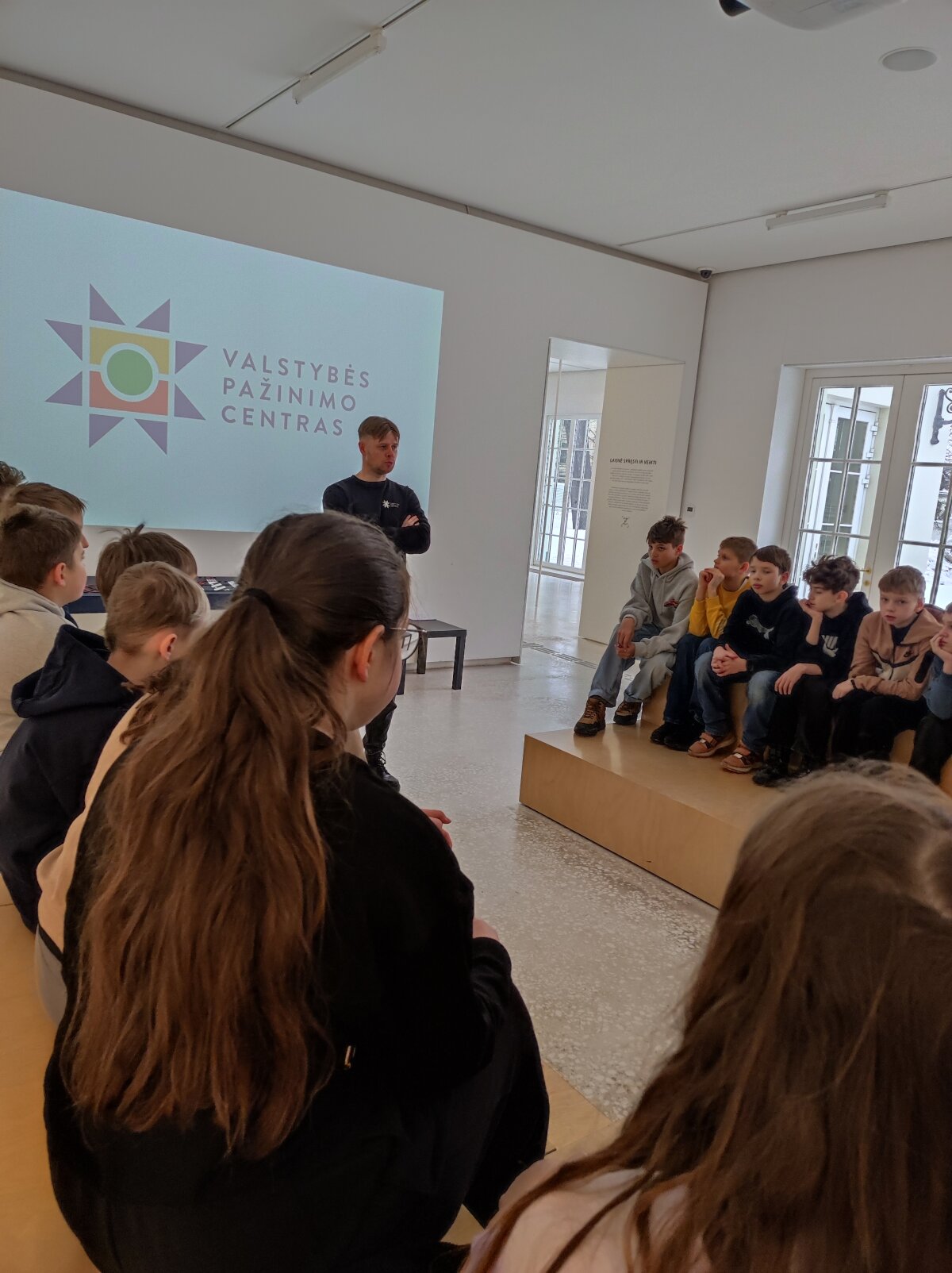 2026-02-25 d. 5D klasės mokiniai vyko į Prezidentūrą, kur veikia Valstybės pažinimo centras ir dalyvavo edukacijoje ,,Ką gali pilietis?"