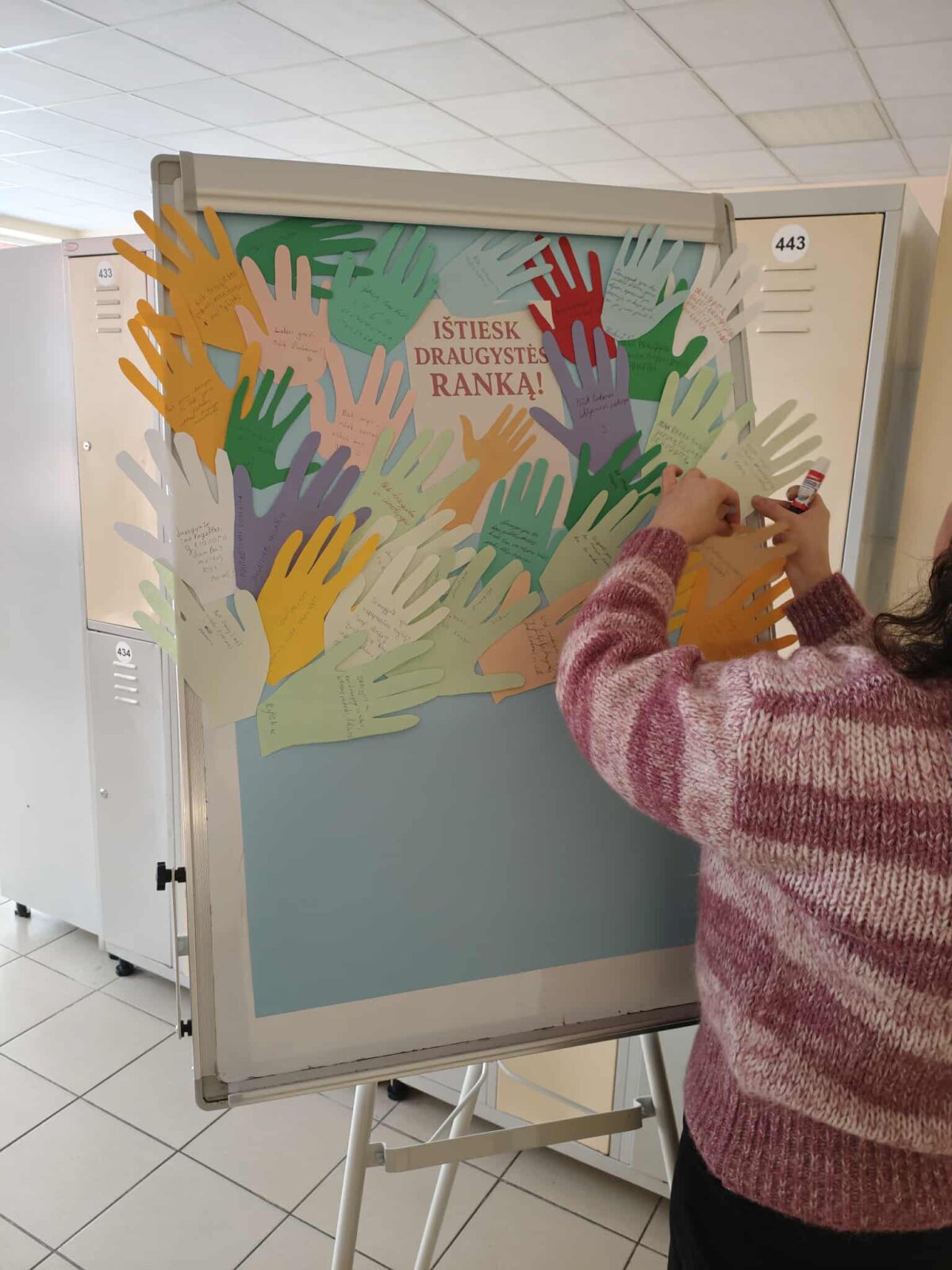 Lapkričio 28 dieną Progimnazijoje buvo minima Tarptautinė draugo diena. Per ilgąsias pertraukas mokiniai buvo kviečiami pasidalinti savo mintimis apie tai, ką jiems reiškia draugystė, ir koks yra tikras draugas. Džiaugiamės vaikų įžvalgomis, virtusiomis spalvingu rankų mišku, kuriuo pasigrožėti kviečiame ir Jus!