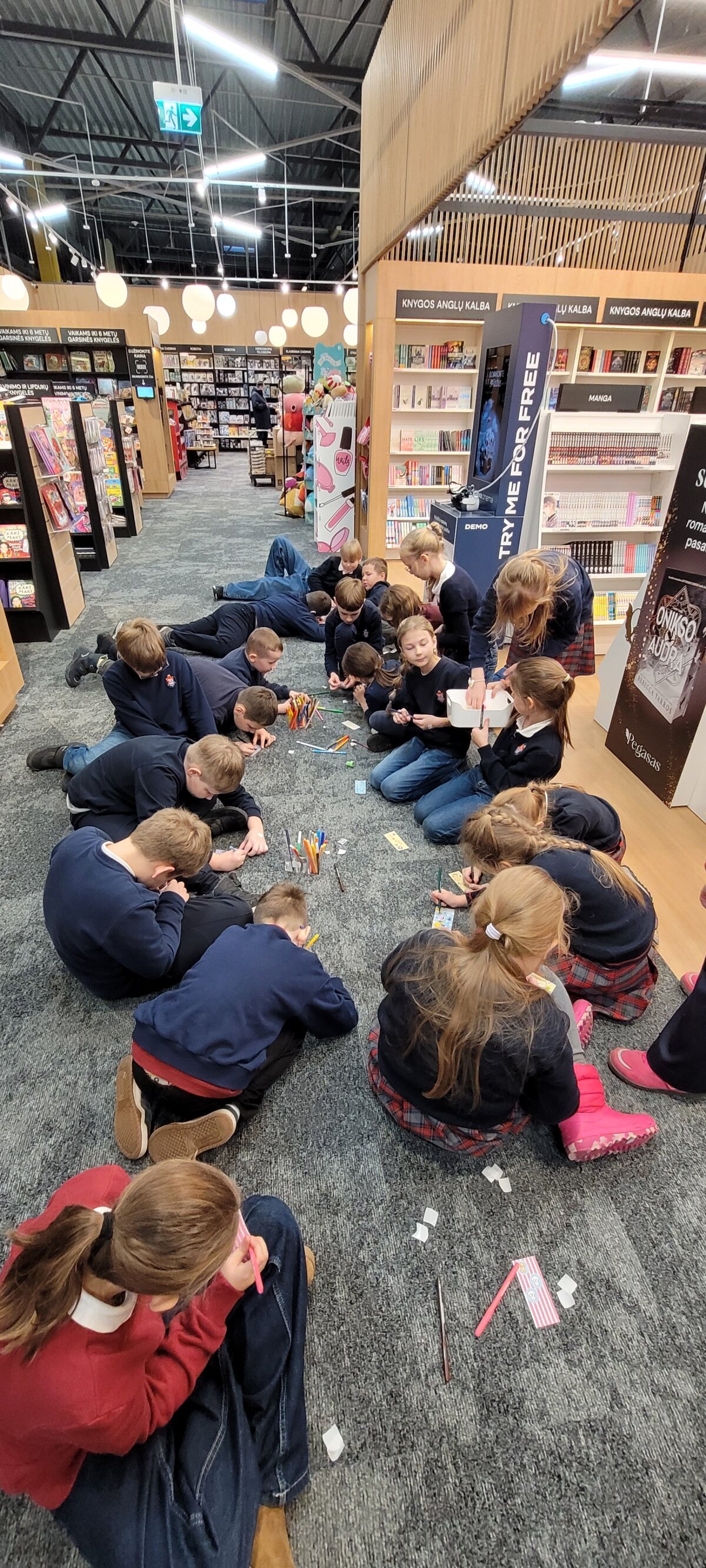 Gruodžio 2 d. 3a kl. mokiniai lankėsi „Pegaso" knygyne, kuriame buvo surengta smagi ir įtraukianti edukacija. Didžiausią įspūdį vaikams paliko susitikimas su knygyno darbuotoja, kuri papasakojo apie savo darbą ir leido vaikams iš arti pamatyti, ką darbuotojai veikia knygyne. Mokiniai dalyvavo komandiniame žaidime, kūrė skirtukus knygoms.