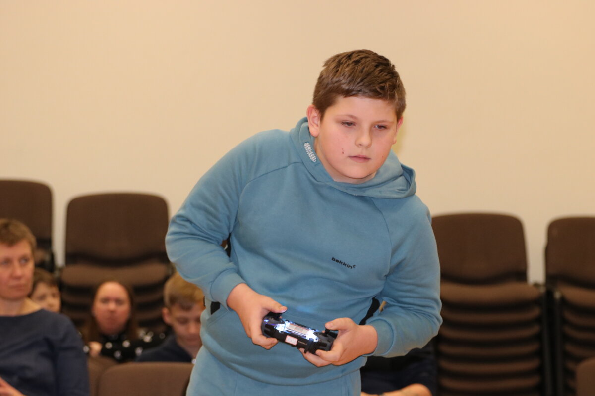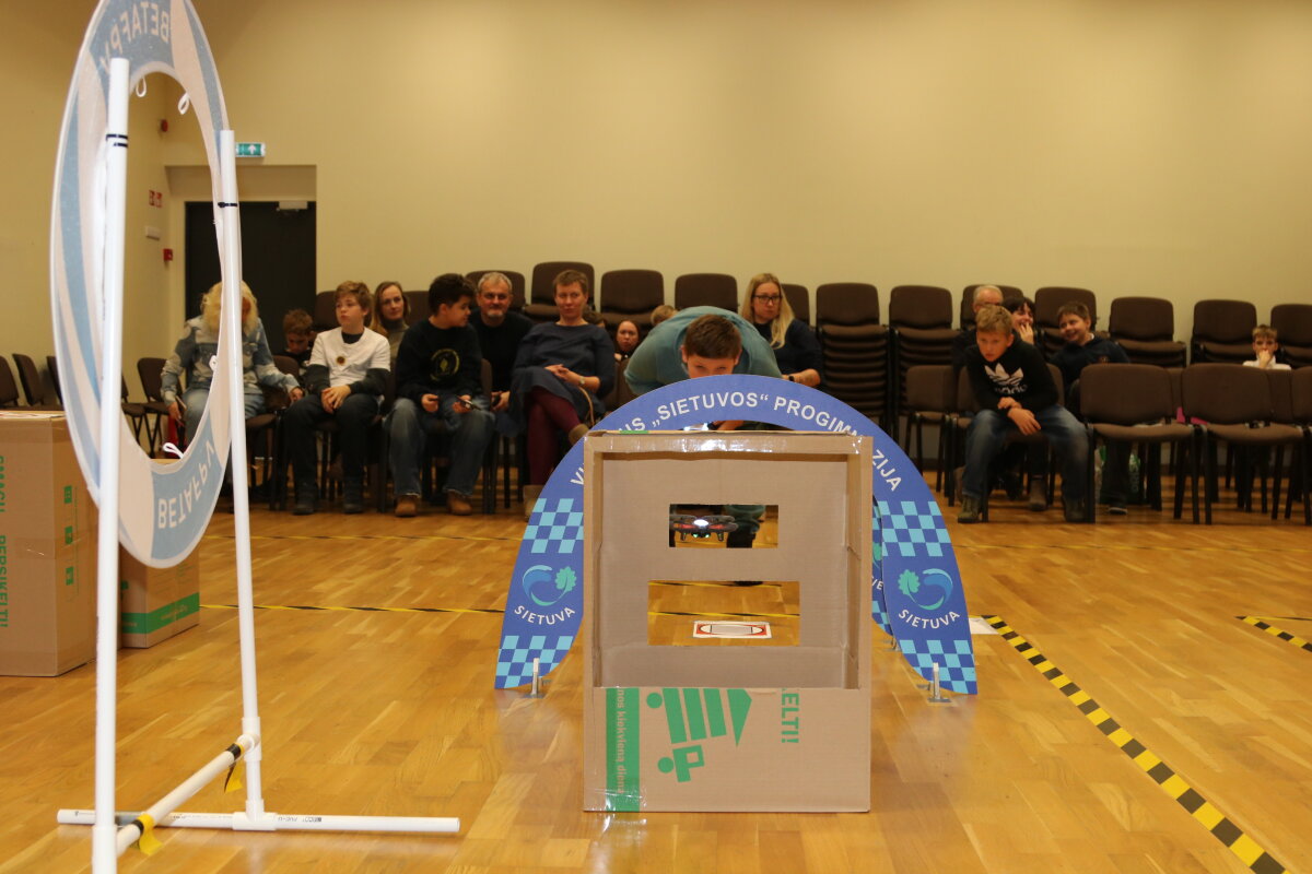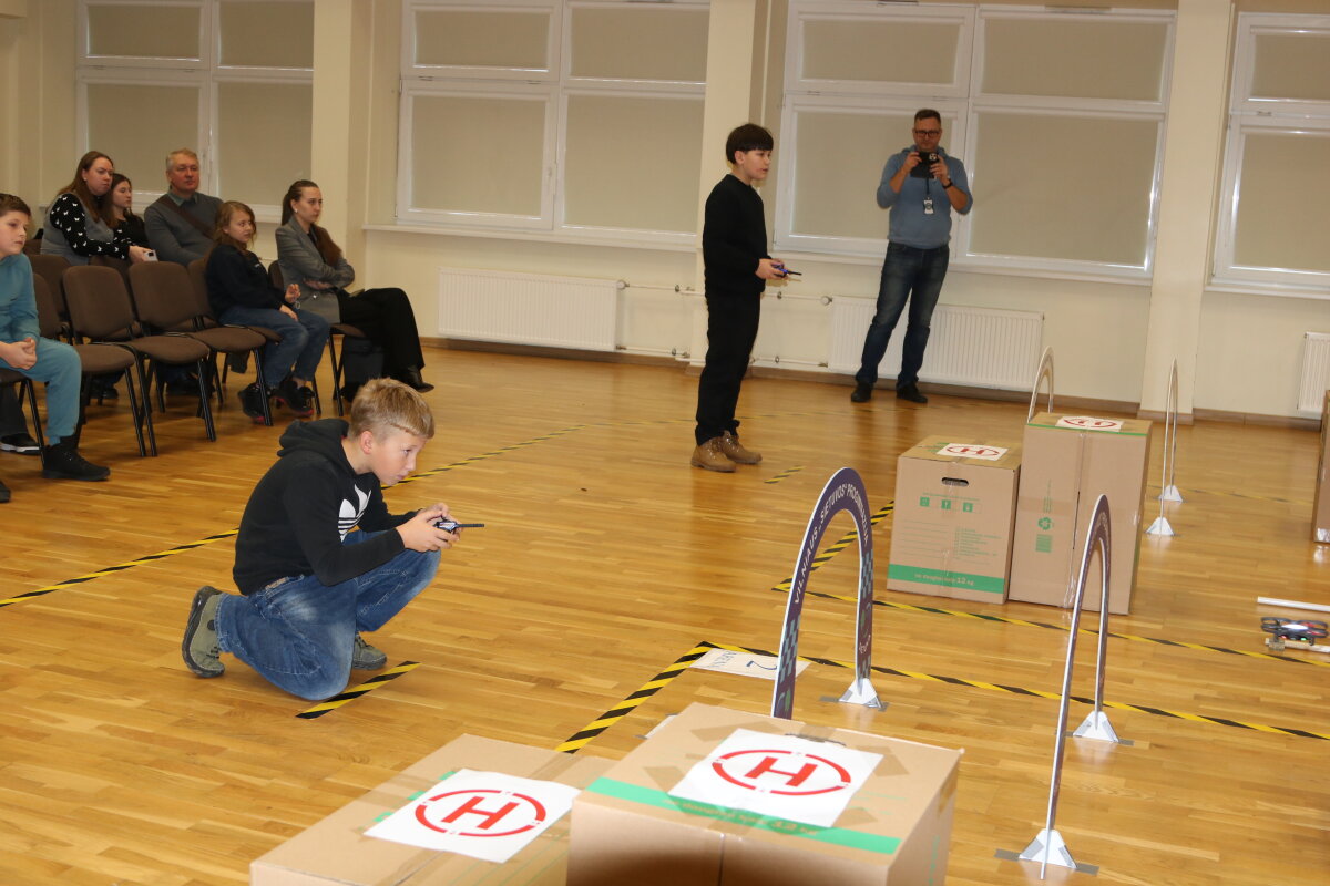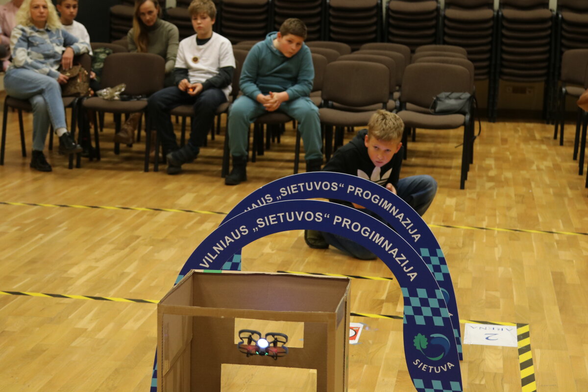 Džiaugiamės ir didžiuojamės, kad mūsų progimnaziją šiose varžybose atstovavo Dominik C. ir Aleksandras K. iš 5c klasės, kurie dalyvavo su „Dronas CoDrone EDU“ dronais. Mokiniai sėkmingai įveikė pirmąjį etapą ir užėmė 6 vietą tarp 18 Vilniaus miesto mokyklų. Varžybos buvo sunkios, varžovai stiprūs, pirmoji patirtis įspūdinga. Grįžome į progimnaziją su vienu tikslu: treniruotis ir pasiekti geresnį rezultatą kitose varžybose.
