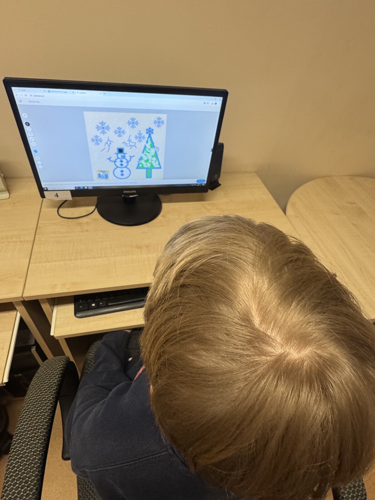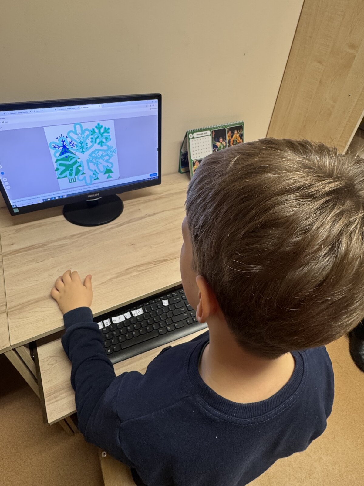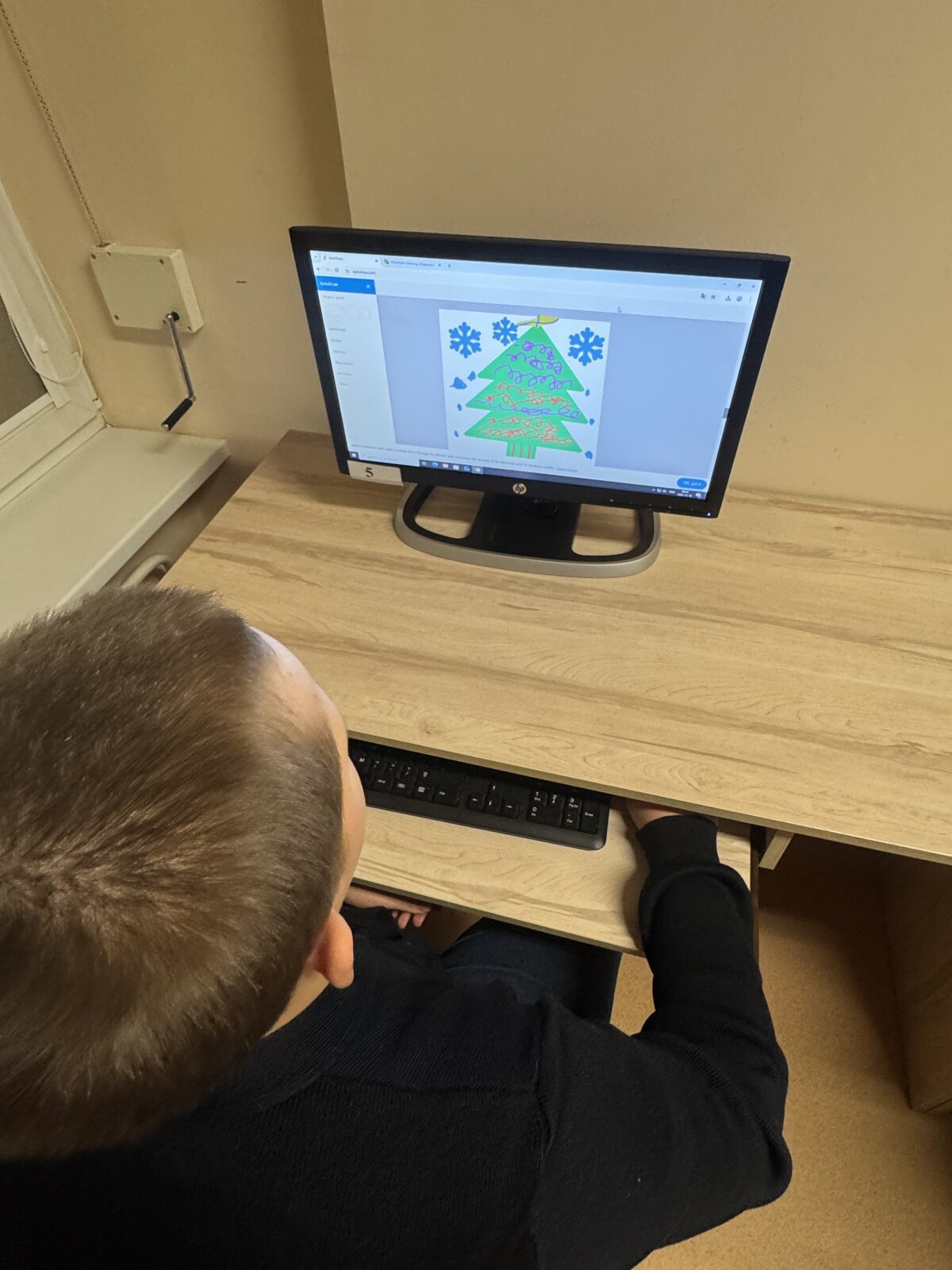 Per informacinių technologijų pamokas mokiniai susipažino su programėle AutoDraw, kurią naudodami kūrė kalėdinius piešinius. Ši veikla skatino mokinių kūrybiškumą, lavino skaitmeninius įgūdžius ir suteikė galimybę patirti džiaugsmą kuriant naudojant technologijas.