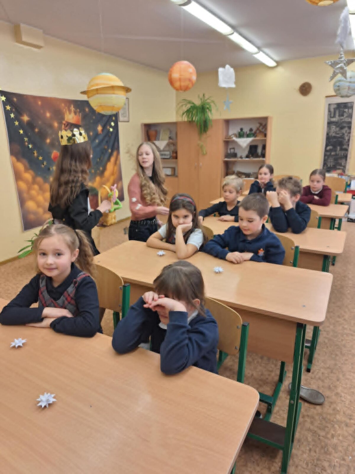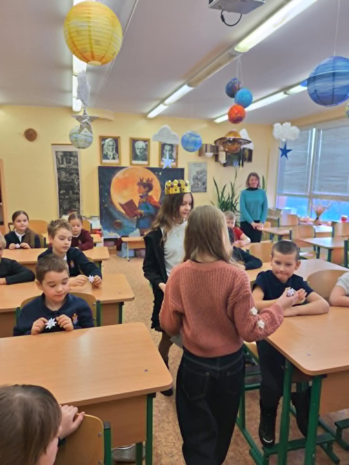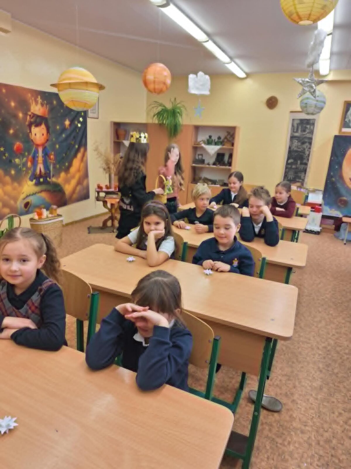 Džiaugiamės, kad edukacijos metu antrokai, penktokai ir šeštokai aktyviai diskutavo, piešė dėžutę, kurioje patalpino avį, bandė įminti stebuklingą smauglio, prarijusio dramblį, mįslę, klausė 5C klasės mokinių montažo, mokytojos Jovitos Brikienės teksto interpretacijos, bibliotekininkės Ritos Maurukės skaitymų ir, sugavę Mažojo princo žvaigždę, patys sugalvojo svarbiausią savo gyvenimo norą.