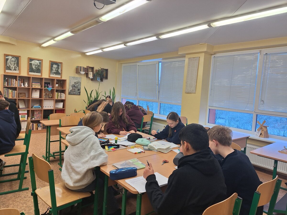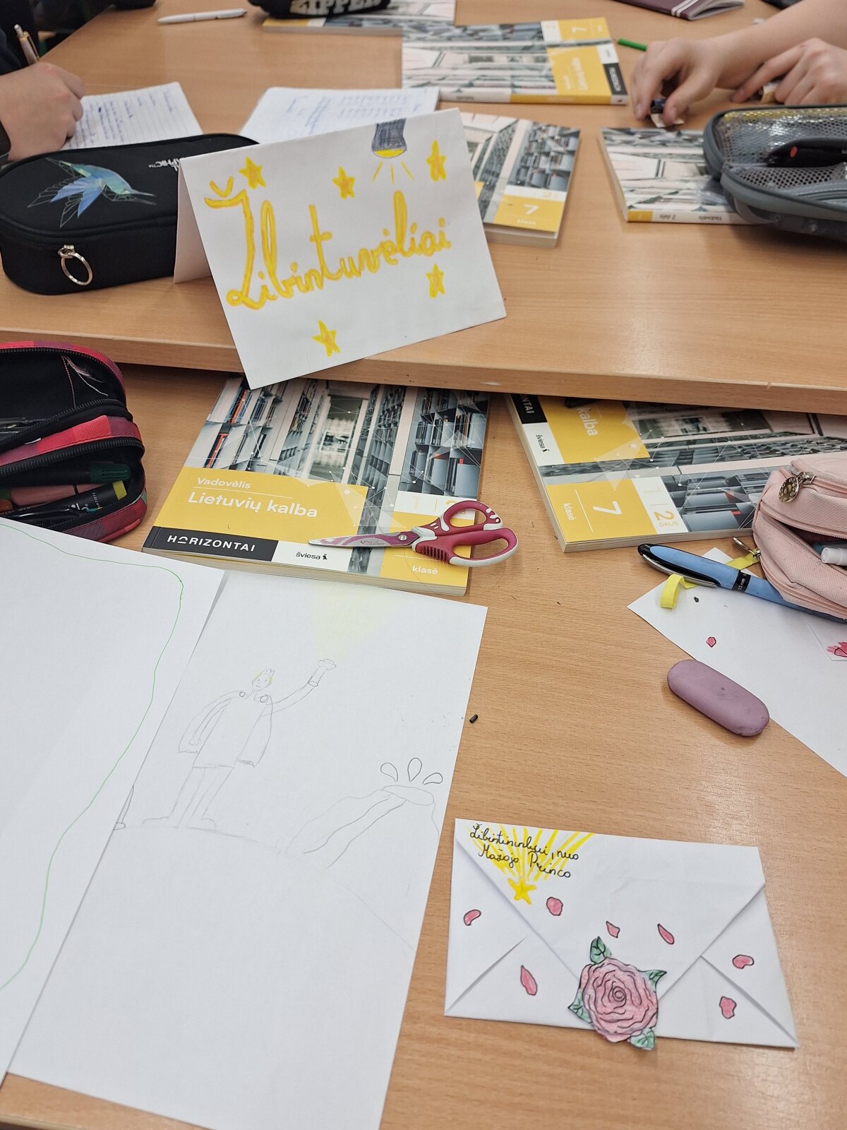 Vasario mėnesį 5-7 klasių mokiniai, mokomi lietuvių kalbos ir literatūros mokytojos Jovitos Brikienės, tęstinę, gruodžio mėnesį pradėtą savarankiškai perskaitytos Antuano de Sent Egziuperi knygos „Mažasis princas" analizės veiklą baigė dirbdami grupėse - 5C klasės mokiniai komunikavo per klasės valandėlę, o 6B, 7C ir 7E klasės mokiniai bendradarbiavo per lietuvių literatūros pamokas.