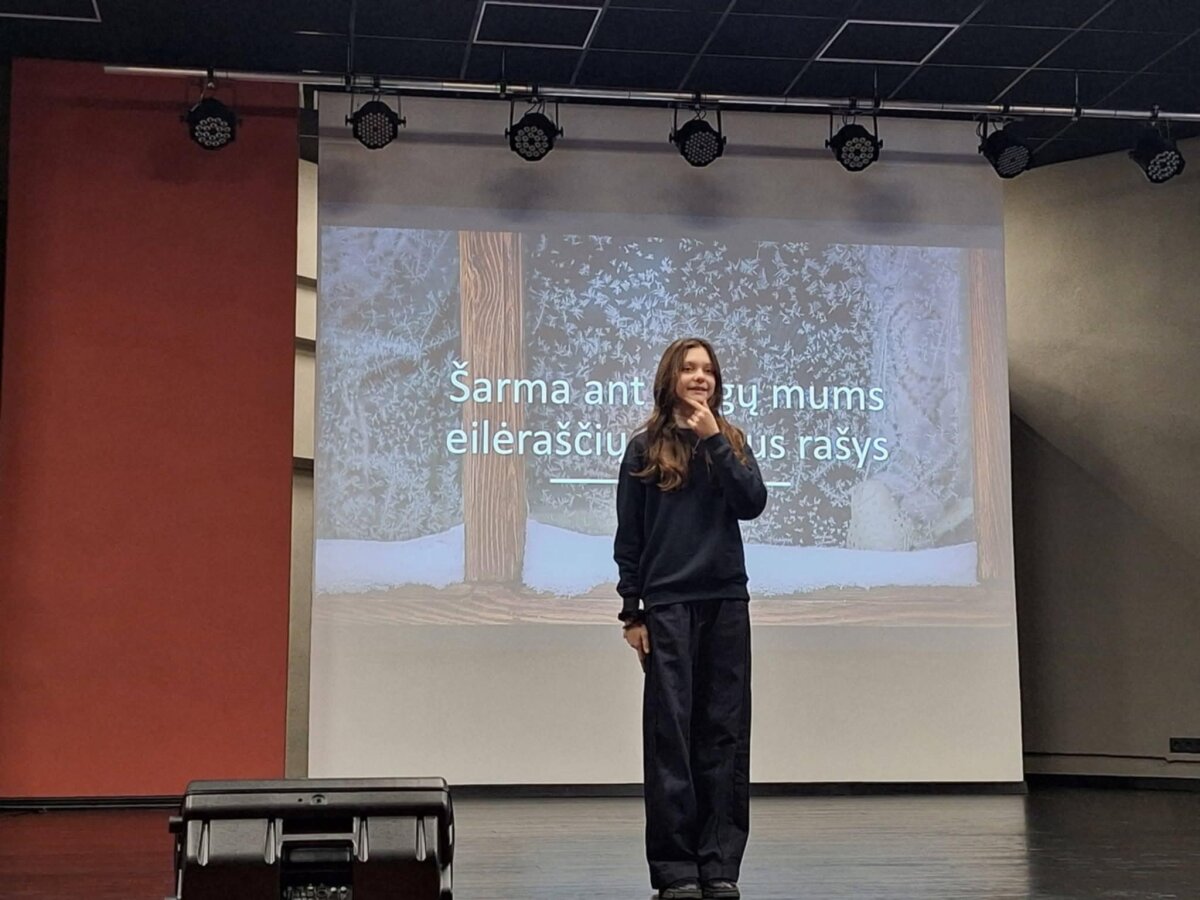 2026 m. sausio 27 d. progimnazijoje vyko 5-8 klasių Meninio skaitymo konkursas „Žodžiai baltoje tyloje“. Tarsi snaigės, krintančios iš dangaus, „spindinčio baltumo eilėraščiai“ pripildė erdvę šviesos, grožio, kviesdami sustoti, įsiklausyiti, pajusti.