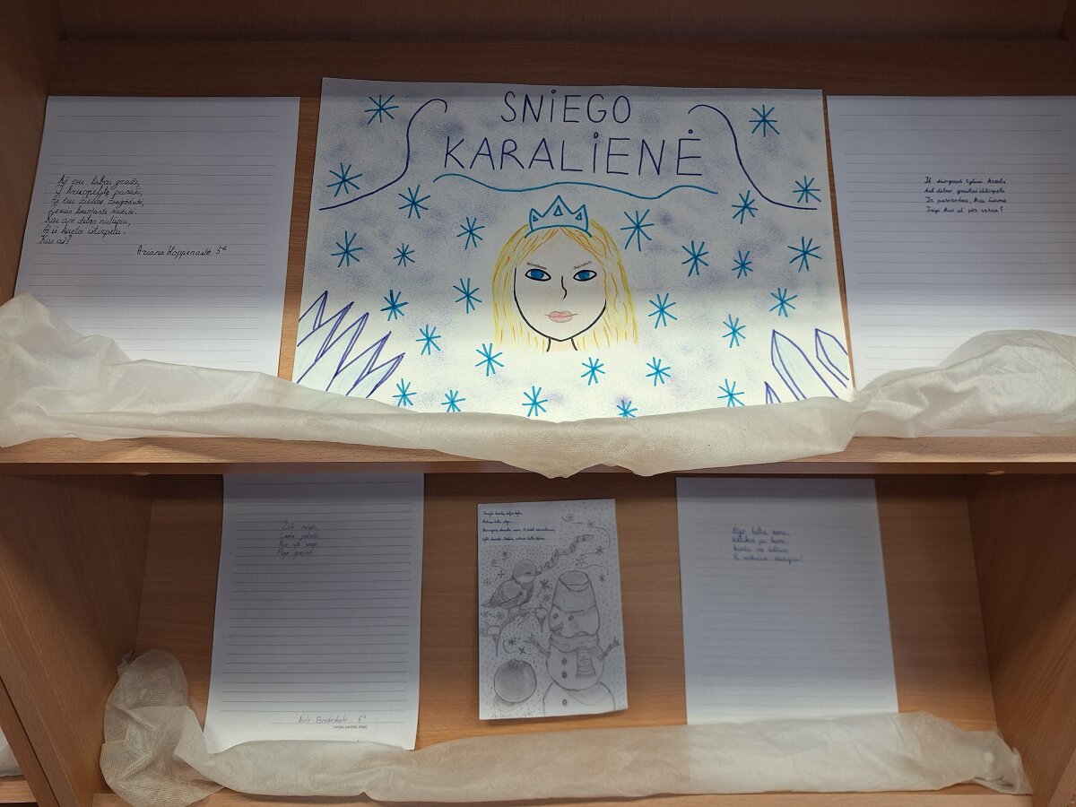 Vasario 24-ą dieną, kol žiema galutinai nepabėgo, 5-8 klasių mokiniai, vadovaujami lietuvių kalbos ir literatūros mokytojų, progimnazijos bibliotekoje paruošė savo sukurtų ketureilių parodą „Šerkšno posmai".