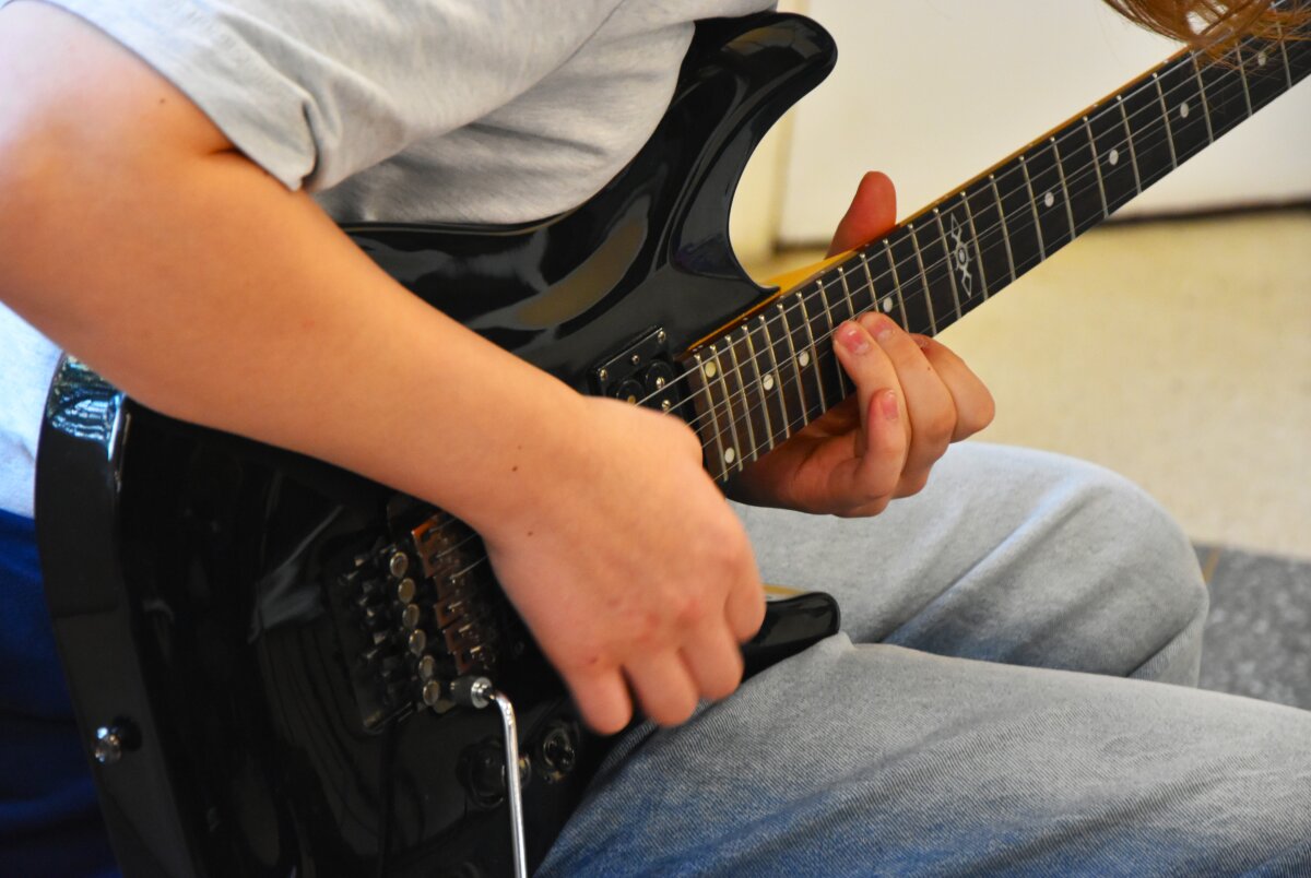 Po keturių pamokų fojė virto linksma šokių erdve – mokiniai galėjo pašėlti diskotekoje, kurioje gyvai gitara grojo 7b klasės mokinys Dovydas B..