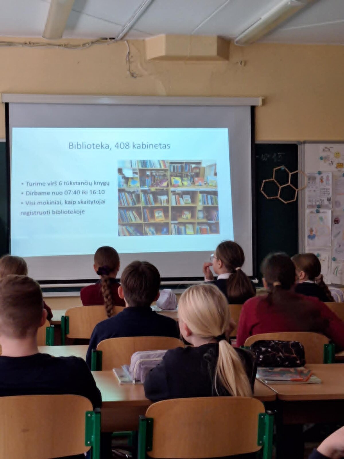 Ji atėjo ne tuščiomis rankomis, o su pilna pintine knygų, kvepiančių nuotykiais, paslaptimis ir, žinoma, magija. Bibliotekos vedėja penktokams atvėrė duris į kitą pasaulį – supažindino su progimnazijos bibliotekos erdvėmis, taisyklėmis ir knygų fondu. Vaikai sužinojo, kiek bibliotekoje yra knygų, skirtų mokytojams, ir kiek yra knygų, skirtų mokiniams. Taip pat vaikai išmoko, kaip greitai susirasti norimą knygą ar leidinį, kaip elgtis bibliotekoje ir kodėl skaitymas yra ne tik naudinga, bet ir įdomi veikla. Pasak viešnios, kiekviena knyga – tai bilietas kelionei be lagamino: vieną akimirką gali būti piratas jūroje, kitą – detektyvas, o po minutės – kosmoso keliautojas.