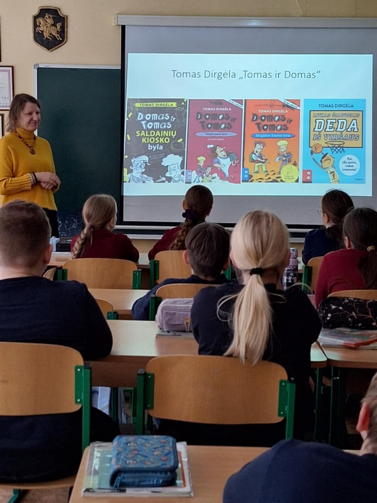Lietuvių kalbos ir literatūros mokytoja metodininkė Jovita Brikienė penktokams priminė, kad skaitymas – ne tik užduotis ar namų darbas, tai būdas pažinti save, suprasti kitus ir „galimybė nuskristi į savo vaizduotės pasaulį“.